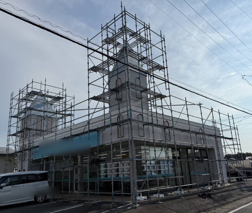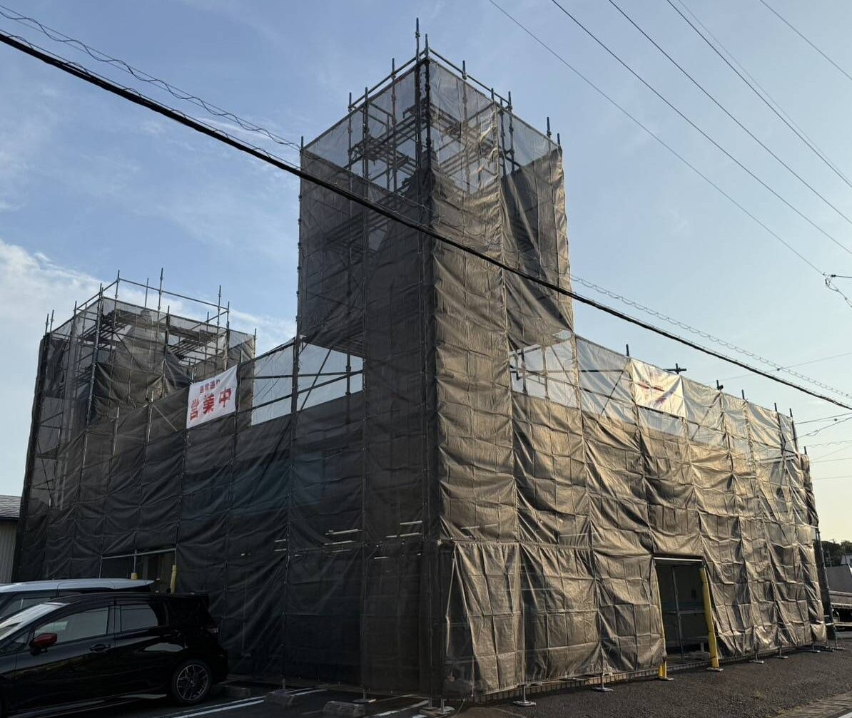 足場にはメッシュシートを使用し、周囲への粉塵や落下物等を防止。 また、美観と安全性を両立するため、設置から解体まで一貫して 丁寧な作業を心掛けています。 お客様や近隣の方々への配慮を第一に、 安心して工事を進められる環境を提供させて頂いています。