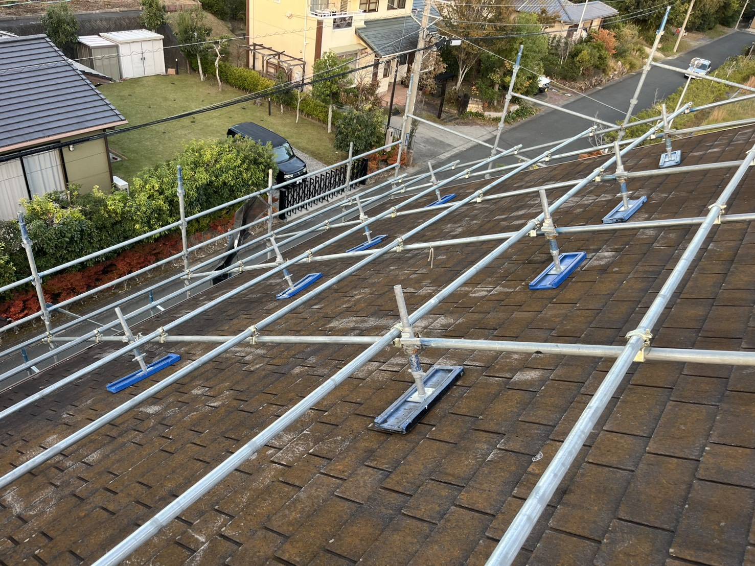 住宅の形状や屋根勾配に合わせ、安全性と作業効率を重視した足場を提供しております。